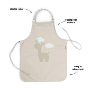 Nuestro delantal infantil con Lalee, la llama soñadora, tiene suaves tonos de color arena. Su práctica superficie impermeable es fácil de limpiar y protege la ropa de tu hijo durante actividades creativas, horneados, cocinas o cenas en familia.