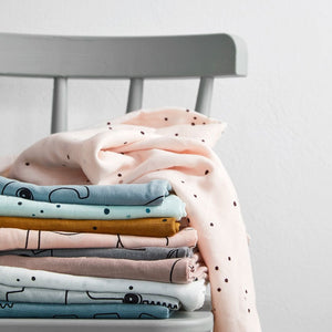 Un set de 2 suaves muselinas de algodón orgánico, decoradas con simpáticos puntos negros. Son de doble capa, muy cómodas y transpirables. Con cada lavado, se vuelven más suaves y tienen un bonito acabado en waffle más grueso, perfecto para el uso diario.
