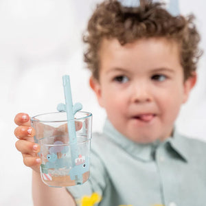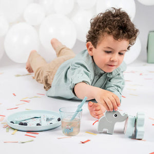 Este bonito set de comida Foodie en tonos azules es perfecto para convertir cada momento en una celebración. Incluye un plato, un vaso, un cuchillo, un tenedor y un pequeño libro, todos con un lindo print de los amigos Deer.