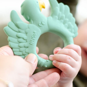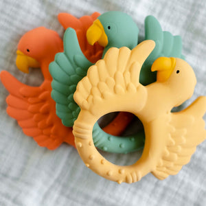 Este precioso anillo mordedor Loro verde, de Natruba, está diseñado para ayudar con las molestias de la dentición al mismo tiempo que fomenta el juego sensorial y la entretención.
