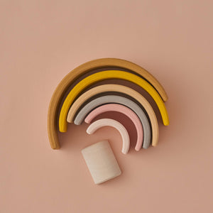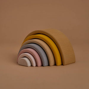 Ideal para jugar y también maravilloso como decoración en tu casa.   Los siete arcos de madera encajan perfectamente, pero también puedes apilarlos o usarlos para hacer figuras.  Cada arco tiene un color diferente.