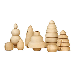 Preciosas formas redondas en madera natural, ideal para dejar volar la imaginación y crear maravillosos mundos e historias fantásticas.