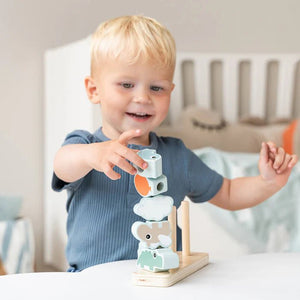 Fabricado con madera de origen responsable y pintado con pintura segura a base de agua, garantiza una experiencia de juego segura para tu hijo. Impulsa el desarrollo de tu pequeño con este divertido juguete apilable.
