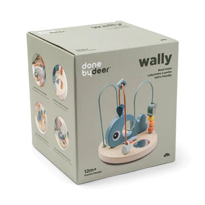 El laberinto de cuentas Wally está diseñado en tonos azules con elementos coloridos. El juguete de madera está hecho de madera de origen responsable y pintado con pinturas a base de agua que no contienen sustancias nocivas, lo que lo hace seguro para que lo use su hijo.