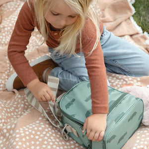 Tiene dos compartimentos y una correa ajustable para adaptarse perfectamente a cada niño. La lonchera es fácil de abrir para un niño cuando usa los dos cierres. Además, tiene una etiqueta con el nombre en el interior.