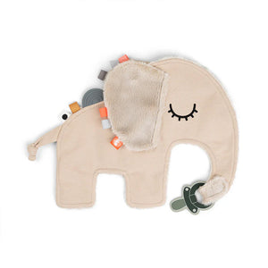 Este lindo y simpático elefante mantendrá el chupete cerca cuando sea la hora de acostarse o cuando esté fuera de casa.  El práctico clip de velcro y la presilla elástica permiten colocar chupetes con y sin asas.