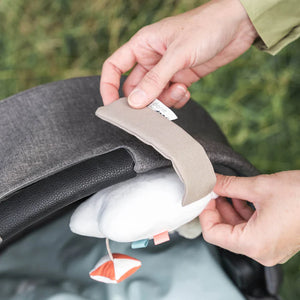 El móvil se ajusta fácilmente al cochecito con un sistema magnético, lo que lo hace sencillo de instalar dondequiera que estés. Con colores suaves y contrastes lúdicos, ofrece estímulo visual, mientras que Elphee aporta comodidad y alegría mientras tu bebé explora el mundo que lo rodea.