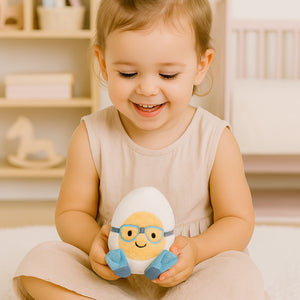 ¡El huevo duro de Amuseables está ansioso por explorar el mar! Con un pelaje súper suave en color crema y amarillo, lentes bordados para bucear y aletas de gamuza azul, ¡este huevo está listo para sumergirse y recibir abrazos!