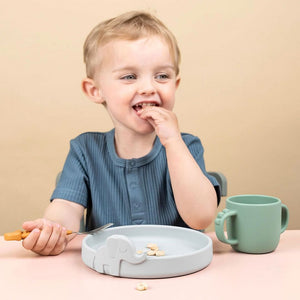 ¡Peekaboo es hora de comer!  Elphee se asoma desde el lindo y práctico plato de silicona y está listo para hacer la hora de la comida el momento más divertido del día.  Con una gran altura y bordes interiores redondeados, hace que el agarre de la comida sea mucho más fácil cuando los pequeños están aprendiendo a comer por sí mismos.