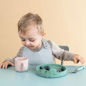 ¡Peekaboo es hora de comer!  Elphee se asoma desde el lindo y práctico plato de silicona y está listo para hacer la hora de la comida el momento más divertido del día.  Con una gran altura y bordes interiores redondeados, hace que el agarre de la comida sea mucho más fácil cuando los pequeños están aprendiendo a comer por sí mismos.