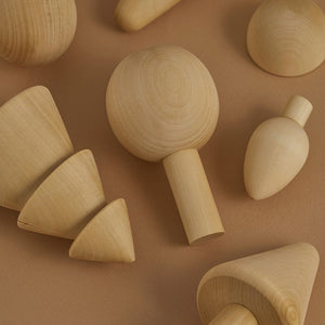 Preciosas formas redondas en madera natural, ideal para dejar volar la imaginación y crear maravillosos mundos e historias fantásticas.