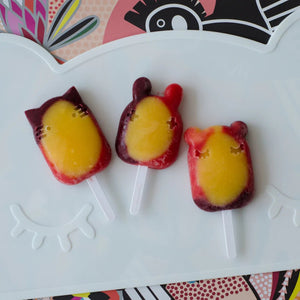 Te presentamos estos divertidos moldes para helados de We Might Be Tiny con la forma de sus tres amigos más conocidos: el gato, el oso y el conejito.  Este molde de silicona para helado es perfecto para las creaciones de verano más dulces y frescas.  Cada molde viene con seis palitosreutilizables.  Cubre el molde con la tapa de silicona transparente para proteger tus creaciones y hacer hermosos helados con formas divertidas.